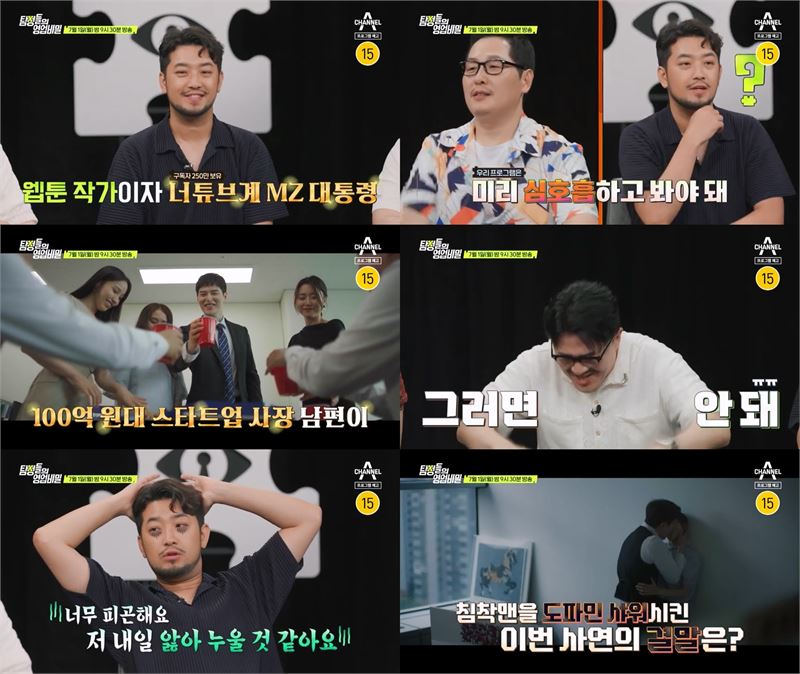 예고편에서는 100억 원대 스타트업 사장인 남편이 하루아침에 사업이 망했다며 아내에게 이혼을 요구하는 장면이 공개됐다. 침착맨은 "진짜 고자극이다"라며 놀라움을 감추지 못했다. 그러나 망했다고 주장하던 남편은 '오마카세'를 주문하며 호화로운 생활을 즐기는 모습이 포착돼 의문을 자아냈다. 더불어 붉은 원피스를 입은 신원 미상의 여성과 남편이 함께 있는 '외도 의심 현장'까지 포착되면서 MC들의 분노를 유발했다. 데프콘은 "그러면 안 돼!"라고 책상을 두드리며 흥분했고, 침착맨도 "유튜브 저리 가라네..."라며 경악했다.