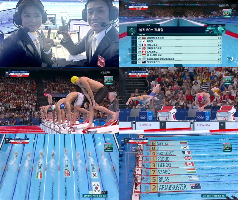 KBS 파리올림픽 수영 중계는 정유인 해설 위원과 이동근 캐스터가 맡고 있으며, 이번 수영 종목에 대한 높은 관심이 시청률 상승으로 이어졌다.
