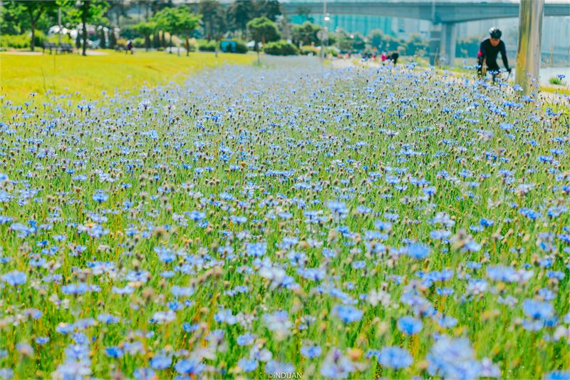 활짝 핀 수레국화는 공원을 온통 보라빛으로 수놓아, 마치 동화 속 풍경을 연상케 한다. 지금 이 순간이 절정인 만큼, 이 아름다움을 놓치지 않기 위해 많은 사람들이 공원을 찾고 있다.