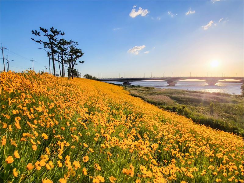가평리 유채꽃밭은 이미 벚꽃 명소로 유명한 남대천 둔치와 생태관찰로와 더불어 남대천의 수려한 경관을 더욱 빛내며 많은 사랑을 받고 있으며 유채꽃과 함께 금계국까지 피어나 한층 더 빼어난 경관을 이루고 있다.