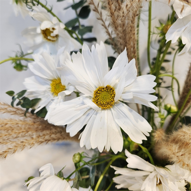 화이트 코스모스와 갈대의 조화