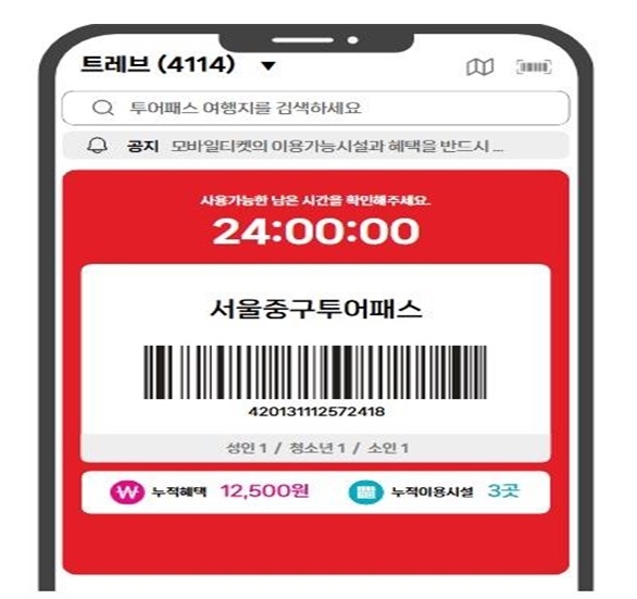중구 투어패스는 오는 3월에 출시할 예정이며 네이버, 쿠팡, 야놀자, KKday 등 국내외 주요 여행 플랫폼을 활용해 판매할 계획이다.