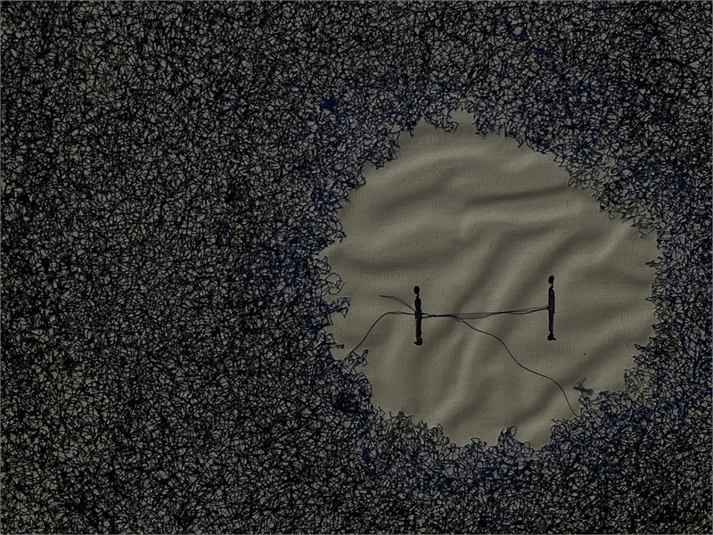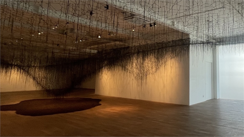 · 꾸이: 저는 그 작품을 한 바퀴 돌다가 반투명한 벽을 마주쳤는데, 그 사이로 들어오는 빛이 되게 인상 깊었어요. 검게 얽힌 실을 지나 결국 밝음으로 이어지는 듯한 느낌이랄까. 마치 “끝내는 괜찮아질 것이다”라는 메시지를 받는 것 같았어요.
