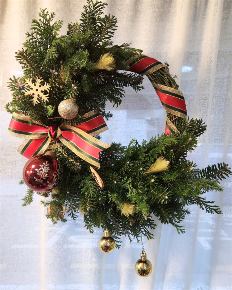 원형의 리스는 끝이 없는 형태로, 또 다른 의미로는 끝나지 않는 생명과 순환을 상징합니다.